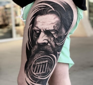 Passionné par l’art sous toutes ses formes, et particulièrement inspiré par la sculpture et l’esthétique classique, j’aime travailler les volumes, les contrastes et la profondeur pour donner vie à des tatouages puissants et expressifs.
