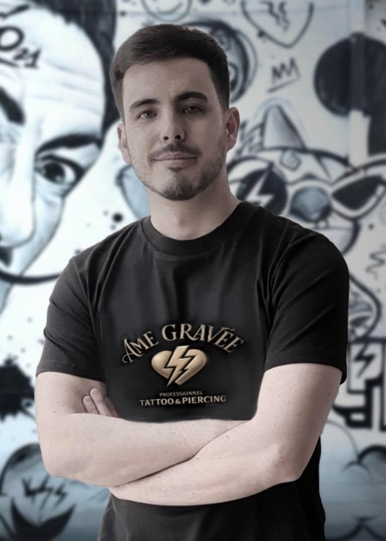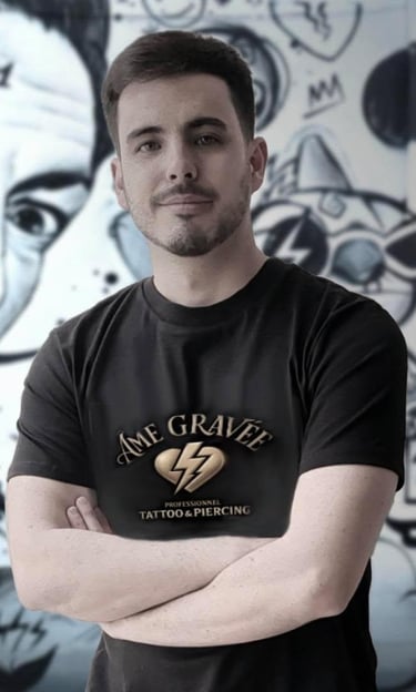 JJe m’appelle Alexis, tatoueur professionnel au sein du studio ÂME GRAVÉE à Fribourg, spécialisé dans le réalisme en noir et gris et l’anime.